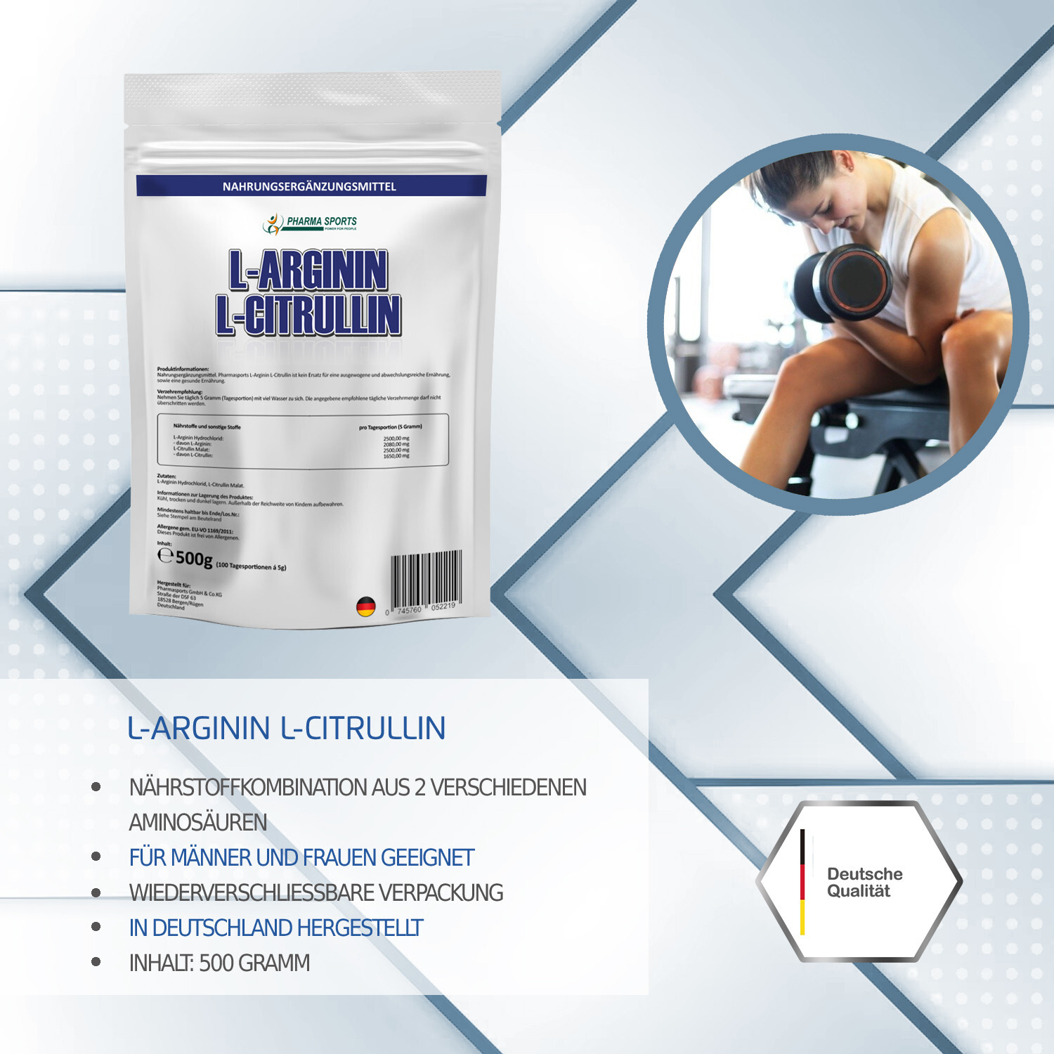 L-CITRULLIN: L-Citrullin greift in der Stickstoffsynthese an und fördert diese. Sie kommt oftmals in Kombination mit L-Arginin zum Einsatz.