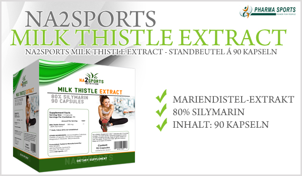 Und wieder einmal hat das Pharmasports-Team sich für Sie in’s Zeug gelegt und einen absoluten Knaller in’s Programm geholt – Na2Sports Milk Thistle Extract! Na2Sports Milk Thistle Extract versorgt Sie mit hochwertigem Mariendistel Extrakt, welches über einen Silymarin-Anteil von 80% verfügt. Pharmasports bietet Ihnen Na2Sports Milk Thistle Extract in einem wiederverschließbaren Standbeutel mit einem Inhalt von 90 Kapseln. Mariendistel Extrakt wie Na2Sports Milk Thistle Extract werden von erfahrenen Athleten aus dem Bodybuilding und Kraftsport auch häufig als effektivsten Leberschutz auf Basis der Nahrungsergänzungsmittel bezeichnet. Wenn auch Sie jetzt Interesse an diesem Produkt haben und dazu eine individuelle Beratung wünschen, so steht Ihnen das Pharmasports-Team natürlich mit Freude zur Seite!
